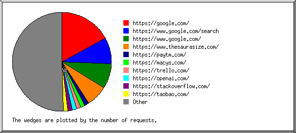 Listing the top 20 organizations by the number of requests, sorted by the number of requests.